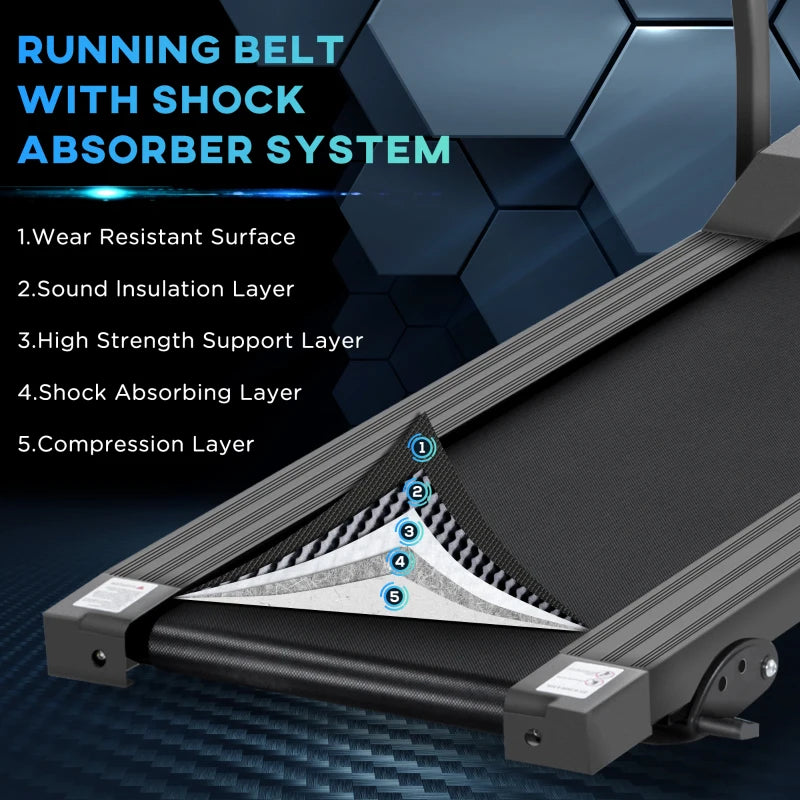 - Portability Design: The treadmill is designed to be foldable for easy storage and includes built-in wheels for effortless transportation. This space-saving design makes it convenient to move and store the treadmill when not in use.
