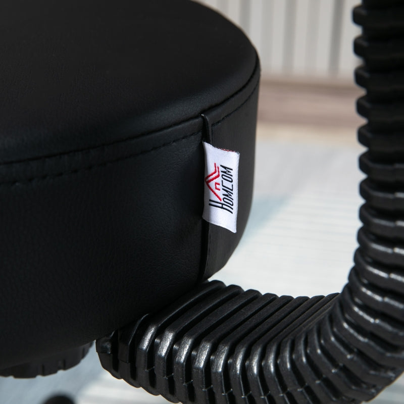 - Comfortable Design: Featuring a seat and back pad filled with sponge for ultimate comfort, this saddle stool is upholstered in easy-to-clean PU leather.