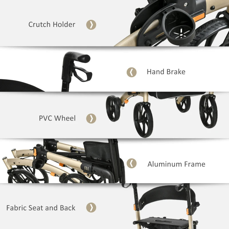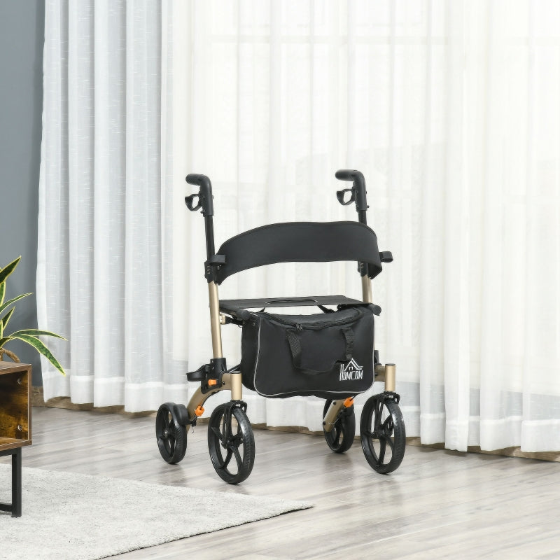 - This rollator is equipped with a built-in seat and backrest, offering a comfortable resting spot. It also features a cane holder and an under-seat storage bag, making it perfect for the elderly.