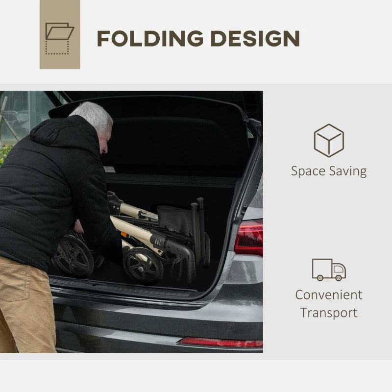 - Dimensions of the 4-wheel rollator: Overall - 67L x 64W x 80-92H cm, Seat - 45L x 25W cm. Certification: UKCA+CE. Assembly is required.
