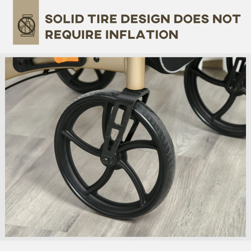 - Constructed with a sturdy aluminium frame and a 4-wheel design, this walking frame with a seat is reliable for daily use. It also includes hand brakes for added safety.