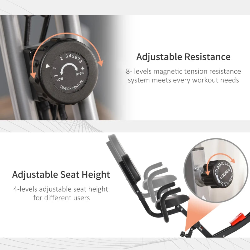 - Multi-Level Resistance Adjustment: Customise this foldable exercise bike among 8 workout resistance levels, suitable for both beginners and professional athletes for daily use.