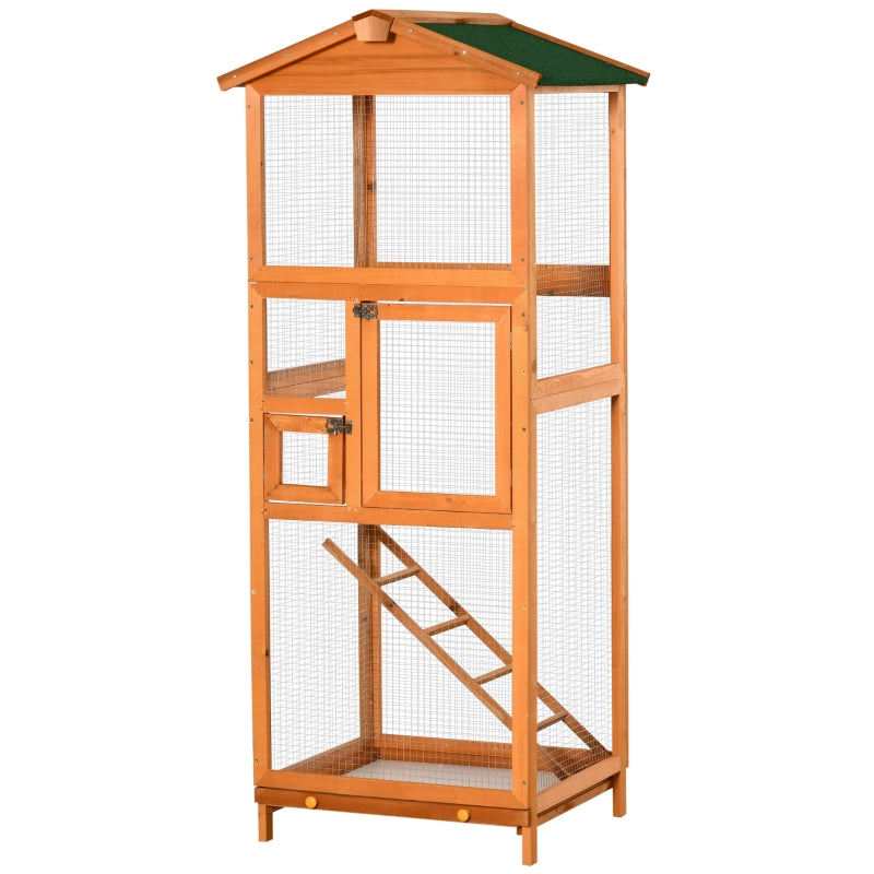 - Spacious Design: The towering structure provides ample room for a large group of birds. Constructed from sturdy fir wood, this outdoor bird cage is built for daily use.