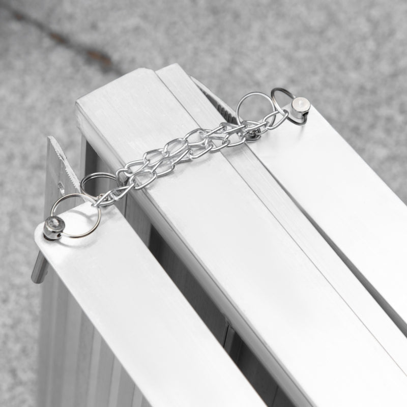 - Secure chain and bolt lock mechanism keeps the ramp sides together when folded