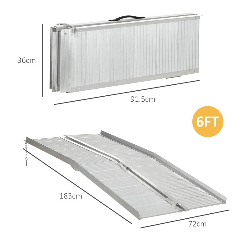 - The wheelchair ramp features a durable aluminium body that is resistant to corrosion, ensuring reliability and support for extended outdoor use.